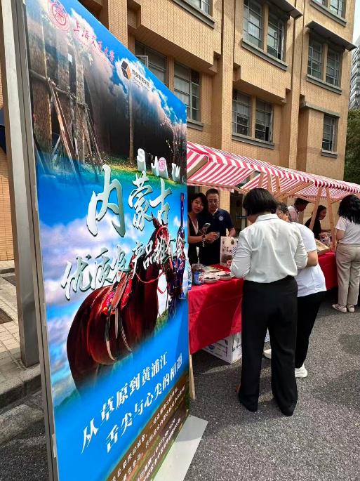 10月13日午间,上海交通大学长宁校区主楼东南侧广场举行了一场别开生面的“内蒙古‘头雁’项目优质农产品推介会”。活动由上海交通大学终身教育学院工会主办,旨在为正在院内参加学习的内蒙古自治区乡村产业振兴带头人培育“头雁”项目学员,搭建展示家乡优质农产品的平台,同时让学院教职工足不出校便能品尝到来自草原的纯净风味,并辐射来自全国各地的在校学员,以实际行动支持国家乡村振兴战略。